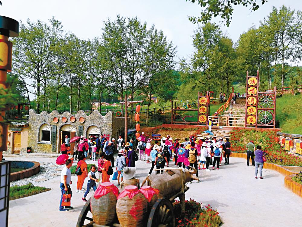 茅草屋、稻草人、耕牛、石磨盤、陶罐、草泥墻、青磚路等,一墻一隅、青磚藍瓦,為了紓解游客的鄉(xiāng)愁,油嘴灣將田園自然風光與鄉(xiāng)土文化緊密結(jié)合作為重要抓手,建材、裝飾物、景觀小品全都體現(xiàn)鄉(xiāng)村文化元素,就地取材,確保呈現(xiàn)原汁原味的鄉(xiāng)村民俗,釋放出河湟農(nóng)耕文化的濃郁氣息,引起人們對鄉(xiāng)愁的一種懷念。