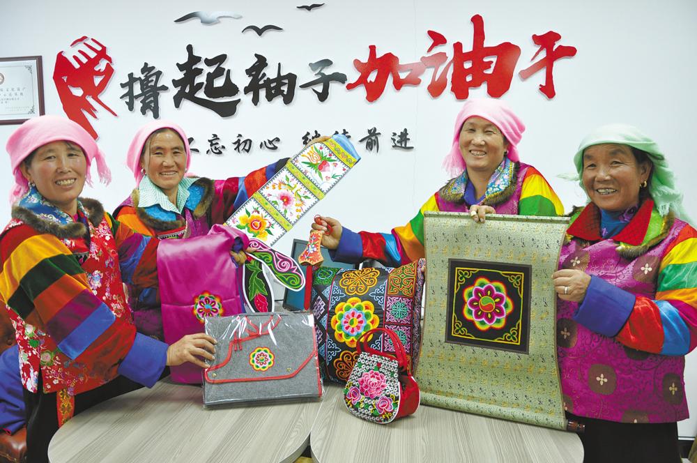 “我剛接觸盤繡的時候,那個時候的盤繡只是土族婦女服飾上的一種裝飾,僅僅而已,它沒有更多和市場的結(jié)合。2015年,盤繡開始逐漸和文旅融合,在互助縣的各個景點進行繡品的投放。在市場需求慢慢擴大后,盤繡輻射到全省將近30多個景點,作為旅游紀念品進行推出?!鼻嗪K芈」么汤C有限公司總經(jīng)理蘇曉莉說,可以說,盤繡就是看中了旅游市場發(fā)展的前景。